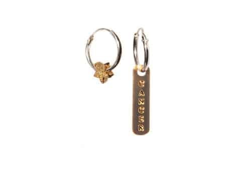 Silver Tag Materials: Gold plated sterling silver hoop with silver plated tag and sterling silver star.