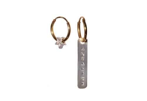 Silver Tag Materials: Gold plated sterling silver hoop with silver plated tag and sterling silver star.